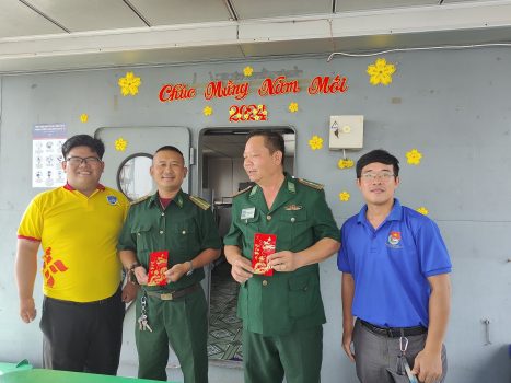Vừa qua, Chiến sĩ Xuân tình nguyện NTTU 2024 đã phối hợp cùng đoàn viên, thanh niên Quận Đoàn 4 giao lưu, tặng quà động viên chiến sĩ biên phòng tại Đồn biên phòng cửa khẩu Cảng Khánh Hội. Đoàn Thanh niên – Hội sinh viên Trường Đại học Nguyễn Tất Thành đã tổ chức chương trình giao lưu, tặng quà cho các chiến sĩ biên phòng đang làm nhiệm vụ tại đây.