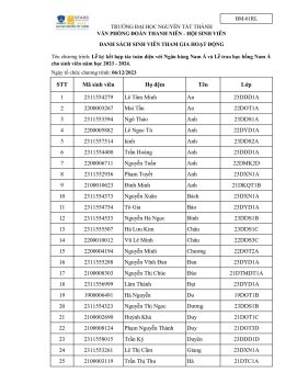 Diễn ra vào lúc 07h30 đến 11h00 ngày 06/12/2023 (Thứ 4). Địa điểm: Hội trường A801 – Cơ sở 300A Nguyễn Tất Thành, Phường 13,...