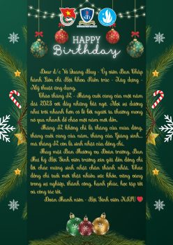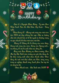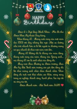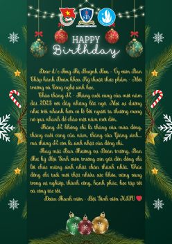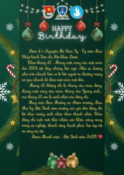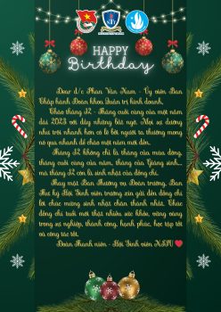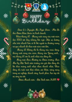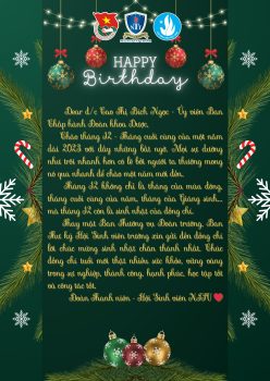 Thay mặt Ban Thường vụ Đoàn trường, Ban Thư ký Hội Sinh viên trường xin gửi đến đồng chí lời chúc mừng sinh nhật chân thành nhất. Chúc đồng chí tuổi mới thật nhiều sức khỏe, vững vàng trong sự nghiệp, thành công, hạnh phúc, học tập tốt và công tác tốt.