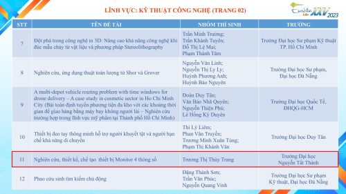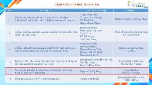 Xin chúc mừng các đề tài xuất sắc vào Vòng Chung kết giải thưởng: