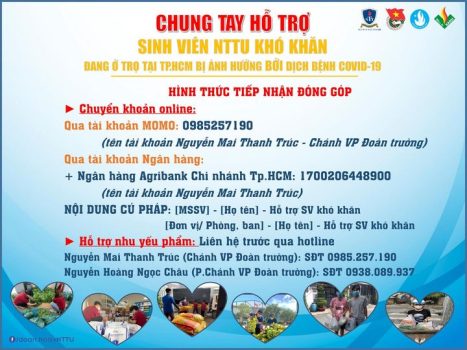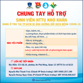 CHUNG TAY HỖ TRỢ SINH VIÊN NTTU KHÓ KHĂN ĐANG Ở TRỌ TẠI TP.HCM BỊ ẢNH HƯỞNG BỞI DỊCH BỆNH COVID-19