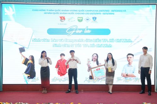 Cùng với đó các bạn sinh viên Lào và Campuchia được lắng nghe những chia sẻ của Sinh viên 5 Tốt cấp Thành phố và của các anh, chị là sinh viên Lào, Campuchia tiêu biểu TP. Hồ Chí Minh nhiều năm liền. Trong đó, có học viên Campuchia KEO LINDA – học viên cao học ngành Quản trị kinh doanh, Trường Đại học Nguyễn Tất Thành, sinh viên Campuchia tiêu biểu Thành phố Hồ Chí Minh 05 liên tục. (2019 -2023) và sinh viên Lào XAIYASONGTHOR TULEE – sinh viên năm thứ 6 đang học chuyên ngành Y đa khoa Trường Đại học Nguyễn Tất Thành, sinh viên tiêu biểu 5 năm liên tục (2019-2023) vinh dự là một trong những khách mời tiêu biểu tham gia chia sẻ về những nỗ lực học tập, rèn luyện và mang trong mình sứ mệnh trở về phát triển đất nước, góp phần vun đắp mối quan hệ hữu nghị vĩ đại giữa Việt Nam – Lào, Việt Nam – Campuchia.