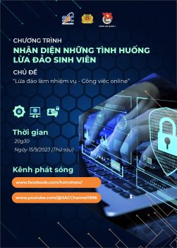 Xin mời các bạn cùng đón xem Chuỗi chương trình trực tuyến “Nhận diện những tình huống lừa đảo sinh viên”, chương trình do Trung tâm Hỗ trợ Học sinh, sinh viên TP.HCM phối hợp cùng Đoàn Thanh niên Công an Quận 1 tổ chức.