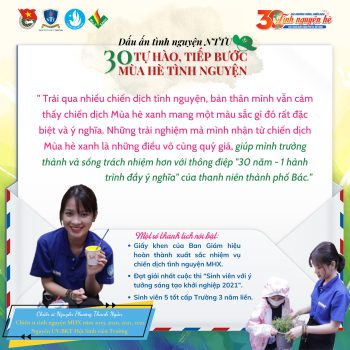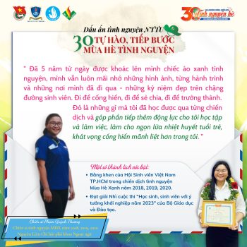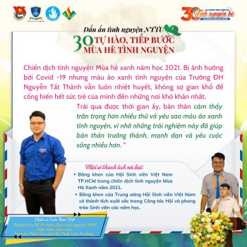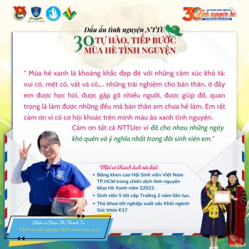 Những chiến sĩ tiêu biểu đã truyền những lời chúc và thông điệp ý nghĩa trong chiến dịch tình nguyện Mùa hè xanh – “Tự hào, tiếp bước 30 mùa hè tình nguyện” của NTTU, ghi dấu ấn vững chắc về tình nguyện và sự đoàn kết.