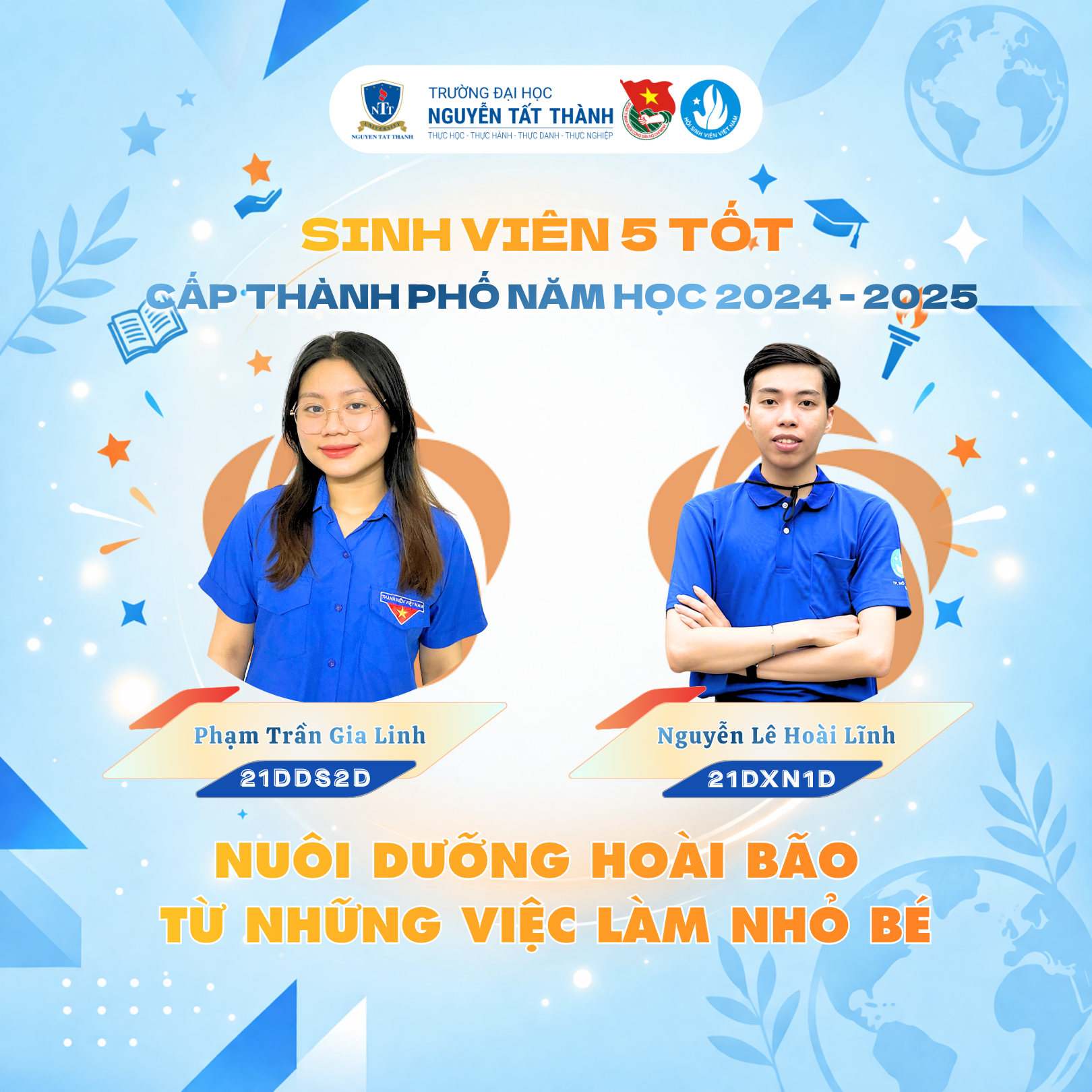 ✨✨ Tại hành trình rèn luyện đầy tự hào, danh hiệu “Sinh viên 5 tốt” chính là minh chứng cho sự thay đổi tích cực trong tư duy và hành động mỗi ngày của Gia Linh và Hoài Lĩnh. Các bạn đã cùng nhau viết nên câu chuyện về lòng kiên trì, biến những nguồn lực sẵn có thành giá trị lan tỏa cho chính cộng đồng.