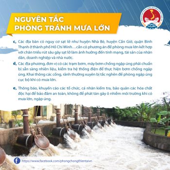 Đối với các địa bàn có nguy cơ cao về sạt lở, như một số khu vực tại huyện Nhà Bè, huyện Cần Giờ, hay quận Bình Thạnh của Thành phố Hồ Chí Minh, cần xây dựng và triển khai các phương án phòng chống mưa lớn một cách chi tiết, có tính đến yếu tố kết hợp với triều cường gây rút sâu, sạt lở bờ sông, có khả năng làm ảnh hưởng nghiêm trọng đến tính mạng, tài sản của nhân dân, doanh nghiệp và nhà nước.