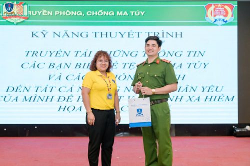 Chuyên đề có sự tham gia chia sẻ của Đại uý Vũ Đình Thinh, cán bộ Đội 1 – Phòng Cảnh sát điều tra tội phạm về ma tuý – Công an TP. Hồ Chí Minh. Với kiến thức chuyên môn sâu sắc và kinh nghiệm thực tiễn phong phú, Đại uý đã mang đến cho sinh viên cái nhìn cụ thể, rõ ràng và cảnh tỉnh về các nguy cơ cũng như hậu quả nghiêm trọng của việc sử dụng ma tuý, đặc biệt là trong môi trường học đường.