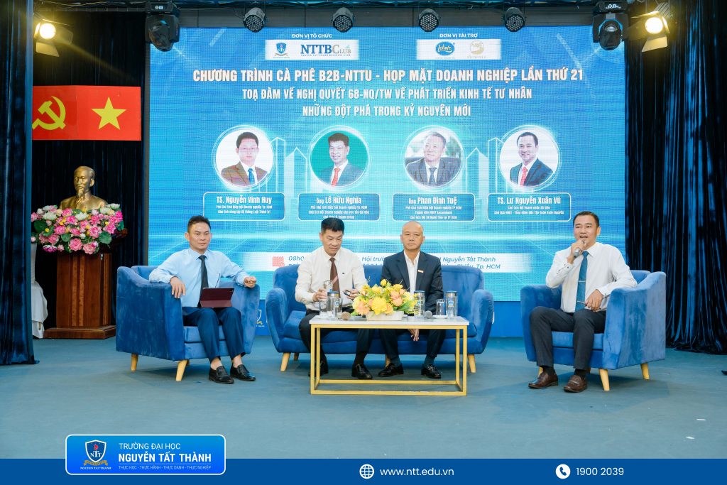 Sáng 26/8/2025, Đoàn TN – Hội SV Trường Đại học Nguyễn Tất Thành phối hợp cùng Câu lạc bộ Doanh nghiệp tổ chức Cà phê B2B – Họp mặt doanh nghiệp lần thứ 21. Chương trình với chủ đề “Tọa đàm Nghị quyết 68-NQ/TW về phát triển kinh tế tư nhân – Những đột phá trong kỷ nguyên mới” đã quy tụ đông đảo doanh nhân, chuyên gia và lãnh đạo các tổ chức, tạo diễn đàn để chia sẻ tầm nhìn, chiến lược và mở rộng cơ hội hợp tác trong kỷ nguyên hội nhập