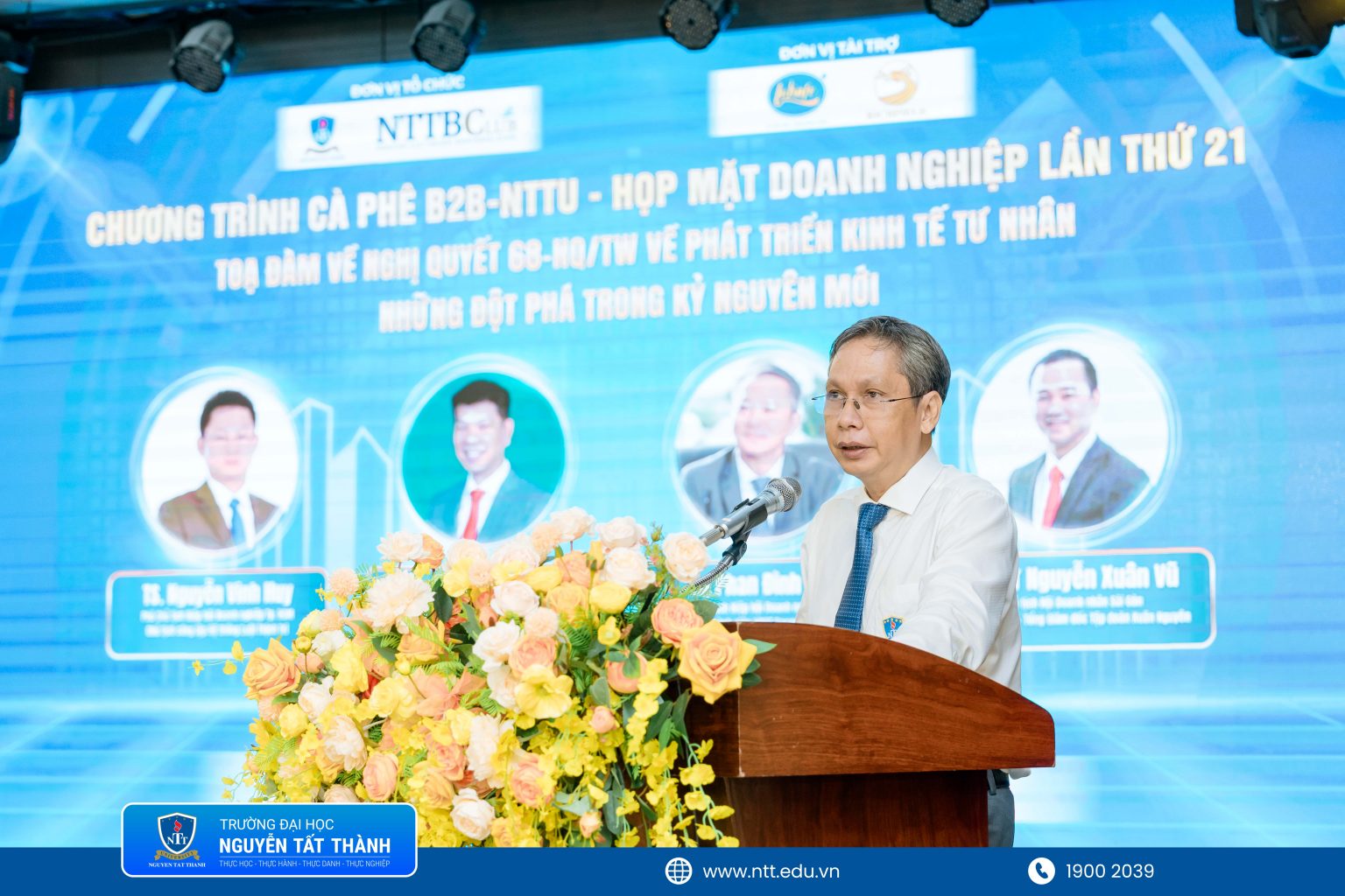 Phát biểu tại chương trình, Ông Hứa Phú Doãn – Chủ tịch CLB Doanh nghiệp Trường Đại học Nguyễn Tất Thành nhận định rằng Cà phê B2B – NTTU đã trở thành nhịp cầu gắn kết bền chặt giữa Nhà trường và cộng đồng doanh nghiệp. Trong bối cảnh kinh tế biến động không ngừng, doanh nghiệp cần đồng hành cùng cơ sở đào tạo để phát triển nguồn nhân lực chất lượng cao, đáp ứng yêu cầu hội nhập và cạnh tranh toàn cầu. Theo ông, Cà phê B2B – NTTU không chỉ mở ra nhiều cơ hội hợp tác mà còn là diễn đàn để doanh nghiệp chia sẻ kinh nghiệm, kết nối nguồn lực và cùng nhau tìm ra hướng đi mới, qua đó khẳng định vai trò ngày càng lớn mạnh của kinh tế tư nhân trong tiến trình phát triển đất nước.