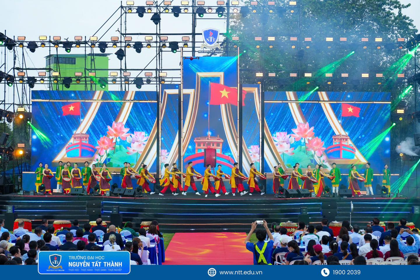 Lần đầu tiên đưa sân khấu Gala ra không gian mở ngoài trời, chương trình đã mang đến trải nghiệm thị giác và âm nhạc chưa từng có. Những màn trình diễn sôi động từ CLB Văn nghệ NTTU, kết hợp cùng dàn khách mời đình đám, đã khiến khán đài không lúc nào hạ nhiệt.