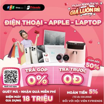 Lưu ý: Đối với khách hàng thân thiết của FPT Shop sẽ nhận được đặc quyền ưu đãi HOÀN THÊM 5%, áp dụng đồng thời các CTKM tháng, hotsale hiện có. Chỉ có tại FPTShop và dành riêng cho hội viên F.Friends.