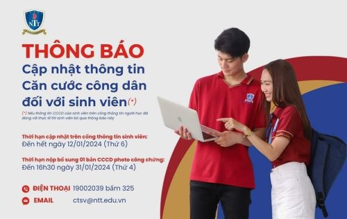Nhằm chuẩn hóa thông tin người học, Nhà trường yêu cầu ???̀? ???̂̉ ???? ???̂? đ??? ???? ??̣? ??̣? ??́? ????/???̣̂? thuộc Trường Đại học Nguyễn Tất Thành thực hiện cung cấp thông tin Căn cước Công dân (CCCD), xem thông báo cụ thể tại: https://ctsv.ntt.edu.vn/cap-nhat-thong-tin-can-cuoc-cong…/