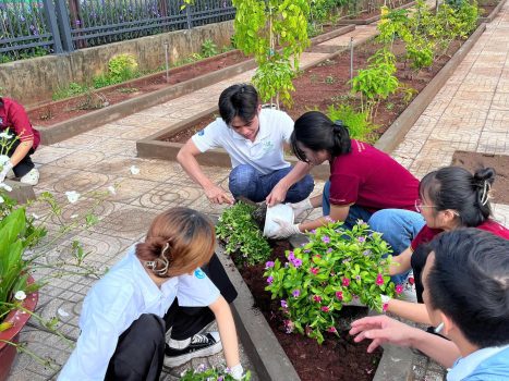 Đoàn Thanh niên – Hội Sinh viên trường đã gợi mở cho các bạn sinh viên ngành Dược cùng Đoàn – Hội khoa đã tích cực tham gia hoạt động trồng và chăm sóc cây Dược liệu, vừa mang giá trị học thuật, vừa góp phần làm đẹp không gian xanh của nhà trường.