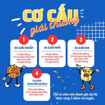 01 Giải Ba: 500.000 đồng + 01 vé Gala chào đón năm học mới + 01 bình giữ nhiệt;