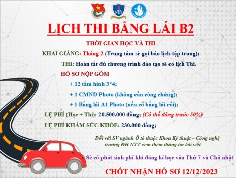 HẠN CHÓT ĐĂNG KÝ CHO BẰNG LÁI Ô TÔ B2: Lúc 12h00 ngày 12/12/2023