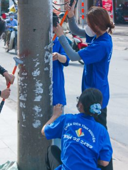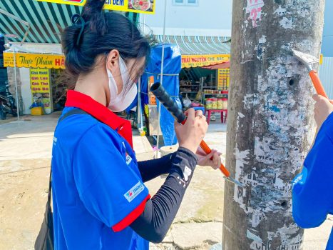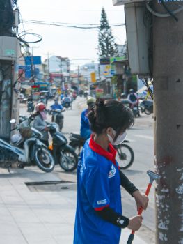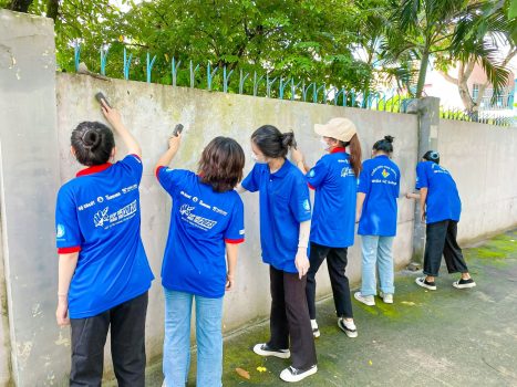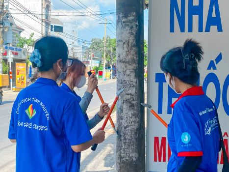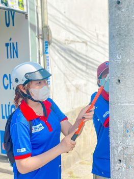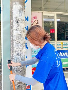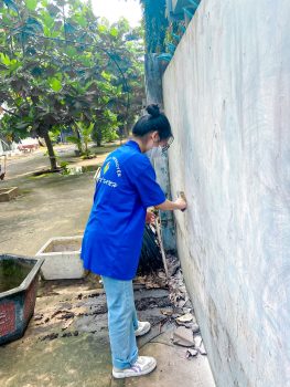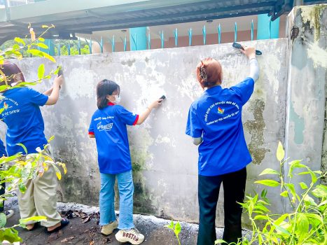 Phối hợp với Đoàn phường Thạnh Mỹ Lợi, Thành phố Thủ Đức bắt đầu buổi tình nguyện bằng hoạt động vệ sinh mảng tường 100 m.