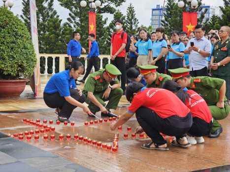 Ngày 26/7 năm nay, các chiến sĩ Mùa hè xanh trường đại học Nguyễn Tất Thành tưởng nhớ, tri ân công lao to lớn của các Anh hùng, Liệt sĩ bằng các hoạt động cụ thể như tham gia lễ dâng hương, thắp nến tri ân tại Nhà truyền thống Chiến khu An Phú Đông, Quận 12.