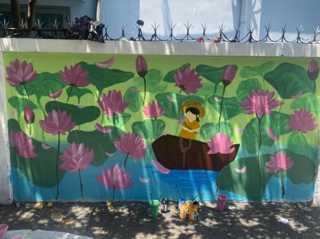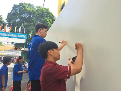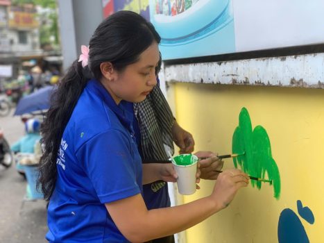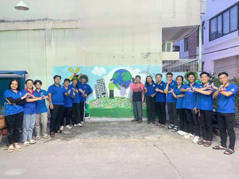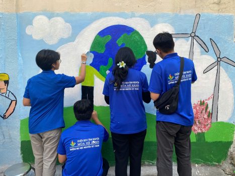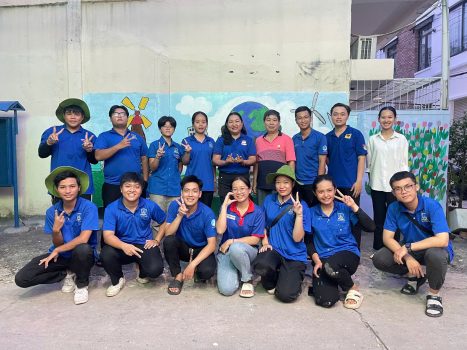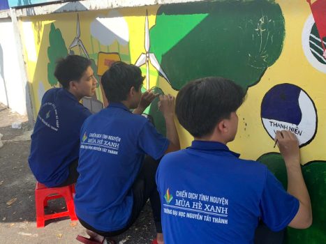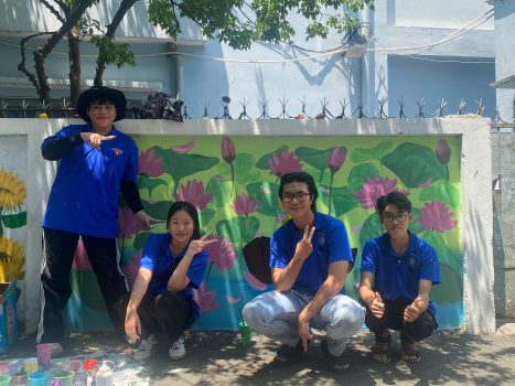 Hoạt động sơn vẽ trang trí tường của chiến sĩ Mùa hè xanh khoa Y tại các Phường 1,3,11,22 – Mặt trận quận Bình Thạnh.