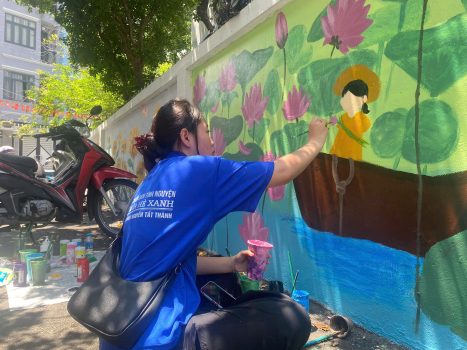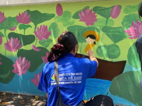 Một bức tranh hoàn thiện, một bức tranh khác lại được tô sắc. Trong chiến dịch Mùa hè xanh năm 2024, các bạn chiến sĩ tình nguyện đã chăm chỉ, thoả sức sáng tạo hô biến những mảng tường cũ thành những mảng tranh đầy sống động, khoác lên diện mạo mới, sức sống mới cho khuôn viên quận Bình Thạnh