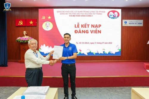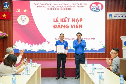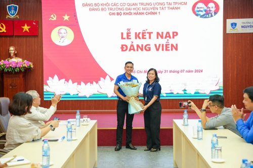 Hòa trong không khí sôi nổi của tuổi trẻ trường Đại học Nguyễn Tất Thành thi đua lập thành tích chào mừng Kỷ niệm 25 năm chiến dịch thanh niên Tình nguyện hè (2000 – 2024) và Kỷ niệm 25 năm ngày thành lập trường (05/06/1999 – 05/06/2024). Được sự cho phép của Đảng ủy trường, Ban Chỉ huy Chiến dịch tình nguyện Mùa hè xanh cấp trường đã phối hợp với Chi bộ khoa Khối Hành chính 1 thuộc Đảng bộ trường Đại học Nguyễn Tất Thành đã tiến hành tổ chức Lễ kết nạp Đảng viên mới cho Đ/c Huỳnh Trần Phương Luân – UV. BTK Hội Sinh viên trường, Liên Chi Hội trưởng, Đội phó Đội hình Mùa hè xanh khoa Kỹ thuật Xét nghiệm Y học vào ngày 31/07/2024 tại Trường Đại học Nguyễn Tất Thành, cơ sở 300A NTT, Quận 4.