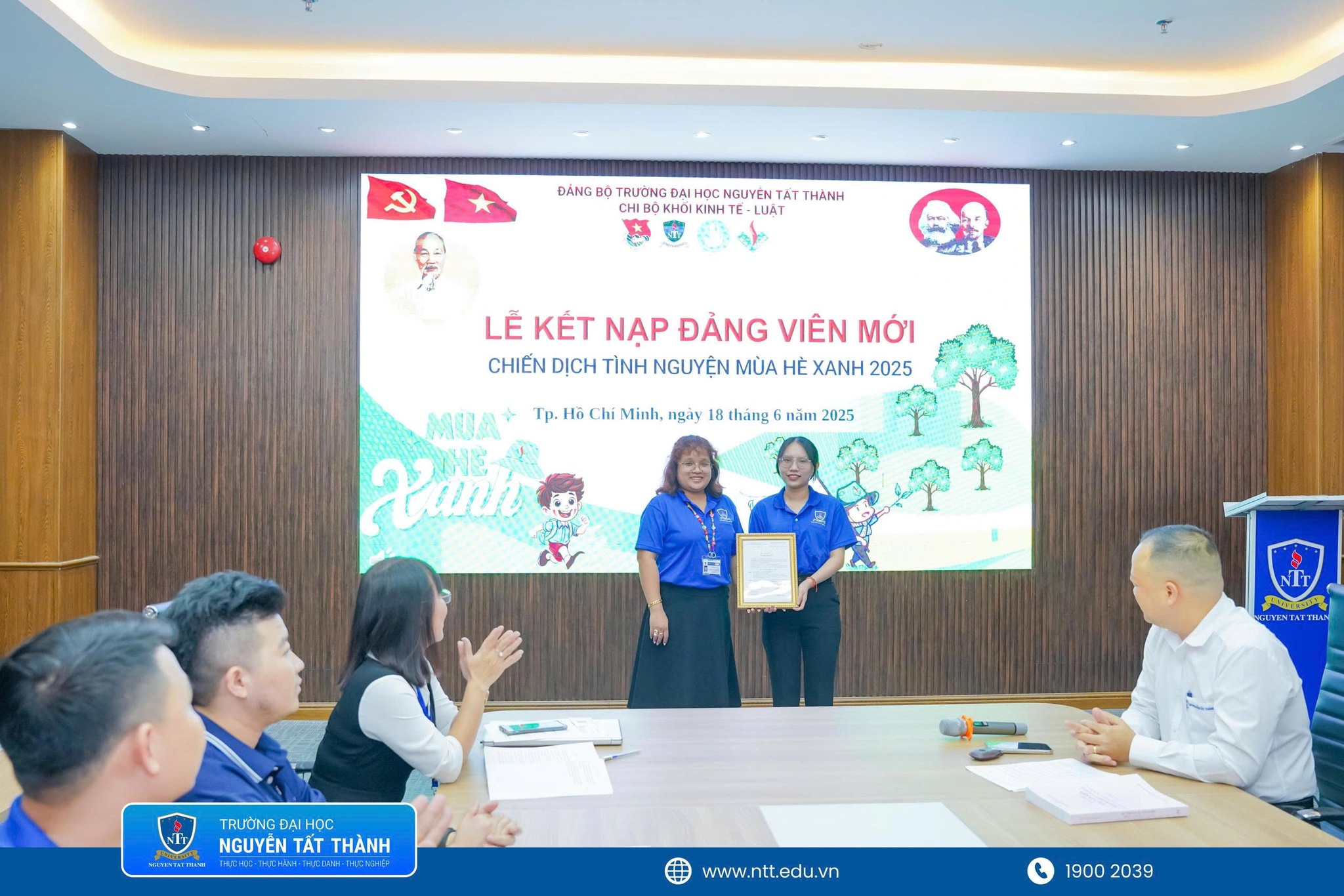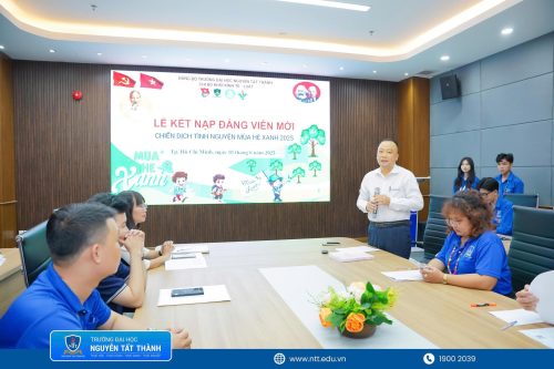 Trong không khí hân hoan của tuổi trẻ NTTU thi đua lập thành tích chào mừng kỷ niệm 26 năm ngày thành lập trường ĐH Nguyễn Tất Thành (05/06/1999 – 05/06/2025) và kỷ niệm 31 năm các chương trình, chiến dịch tình nguyện hè (1994 – 2025), sáng ngày 18/06/2025 được sự cho phép của Đảng ủy trường Đại học Nguyễn Tất Thành Chi bộ Khối Kinh tế – Luật đã trang trọng tổ chức Lễ kết nạp Đảng viên mới cho quần chúng Trần Thị Thanh Thúy – Bí thư Chi đoàn 22DLK1B và là chiến sĩ tham gia chiến dịch Mùa hè xanh năm 2025 trường Đại học Nguyễn Tất Thành.