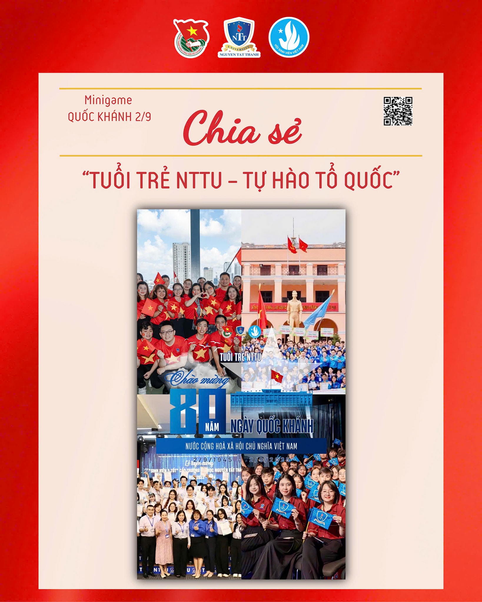 Hòa trong không khí kỷ niệm 80 năm Ngày Quốc khánh Nước Cộng hòa Xã hội Chủ nghĩa Việt Nam (02/9/1945 – 02/9/2025), tuổi trẻ Trường Đại học Nguyễn Tất Thành hãy cùng nhau tiếp tục lan tỏa tình yêu nước và niềm tự hào dân tộc qua Minigame lần này.