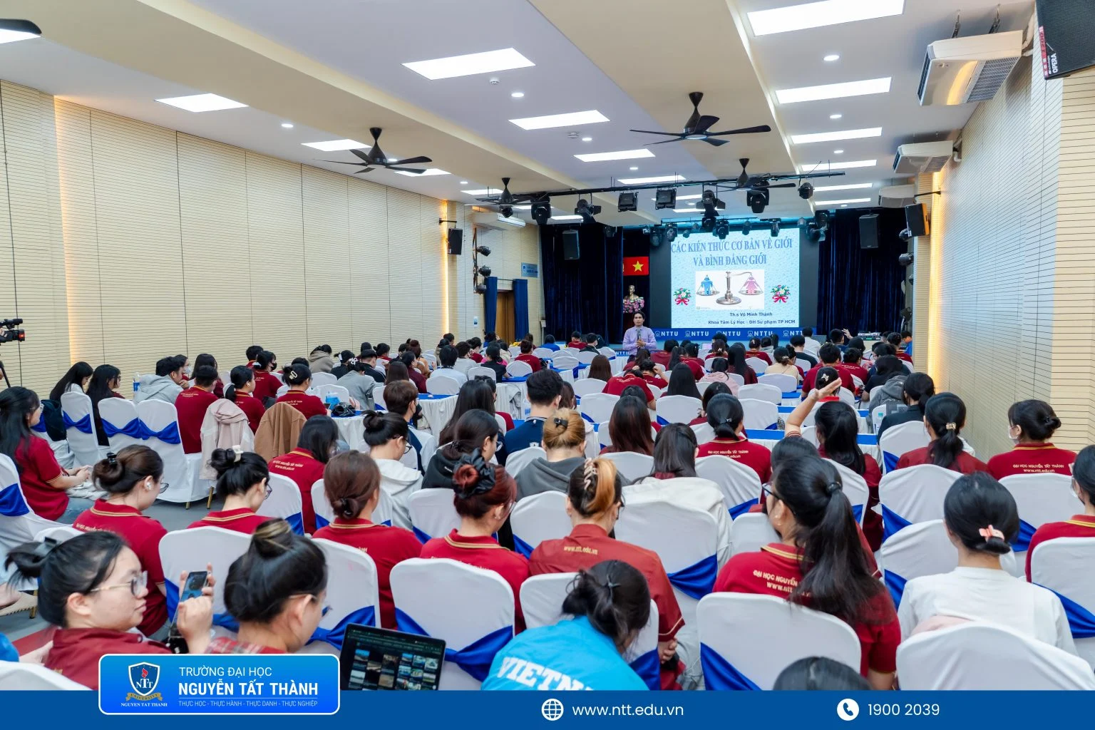 Ngày 25/12 vừa qua, Trường ĐH Nguyễn Tất Thành đã tổ chức hội thảo Nâng cao nhận thức về bình đẳng giới cho sinh viên năm 2025 với mục đích nhằm tạo ra không gian giáo dục giúp sinh viên cùng trao đổi, chia sẻ kinh nghiệm về sự bình đẳng giữa các giới trong môi trường học tập và xã hội. Hội thảo do ThS tâm lý Võ Minh Thành – Giảng viên khoa Tâm lý học Trường ĐH Sư phạm TP. HCM làm diễn giả.
