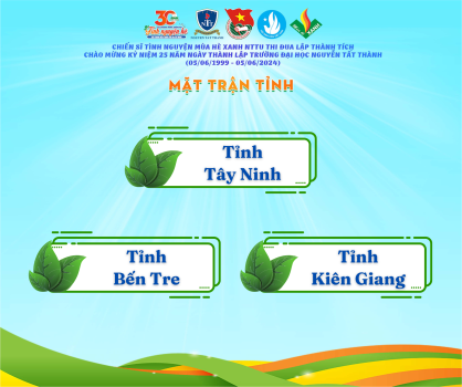 03 Mặt trận Các Tỉnh: Tây Ninh, Bến Tre và Kiên Giang. Ôi những điểm đến mới mẻ và thú vị này! Chuẩn bị cho cuộc hành trình phiêu lưu đến những miền quê yêu thương. Chúng ta sẽ mang theo màu xanh và niềm vui đến cho những cộng đồng tuyệt vời này nhé.