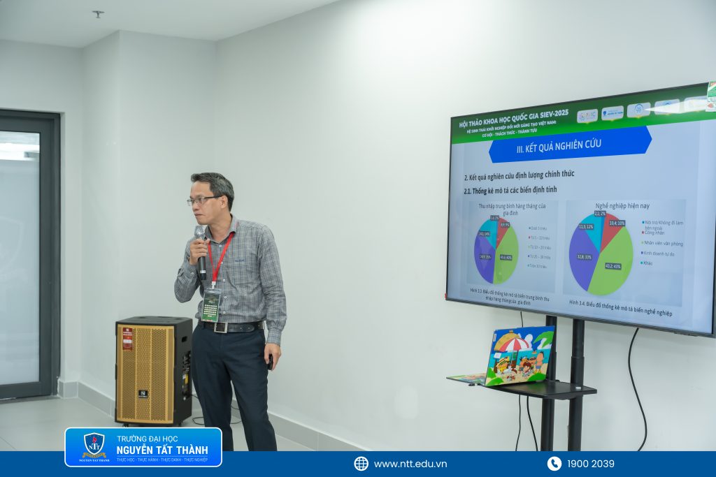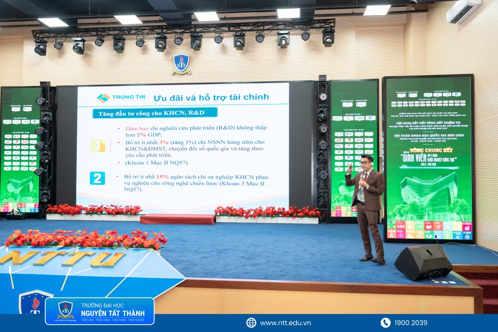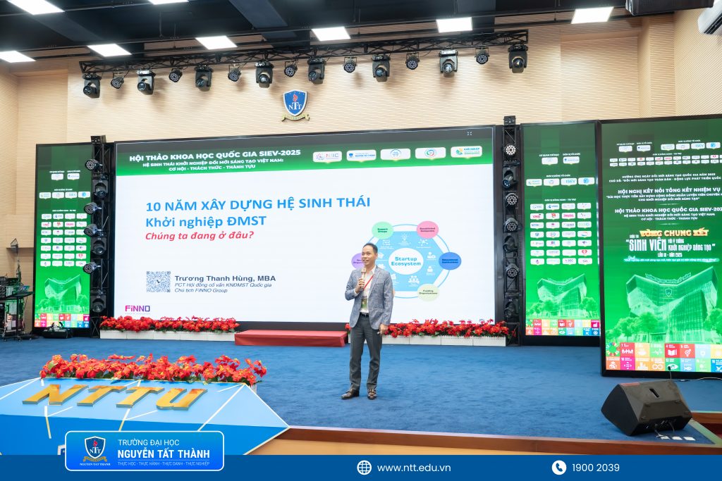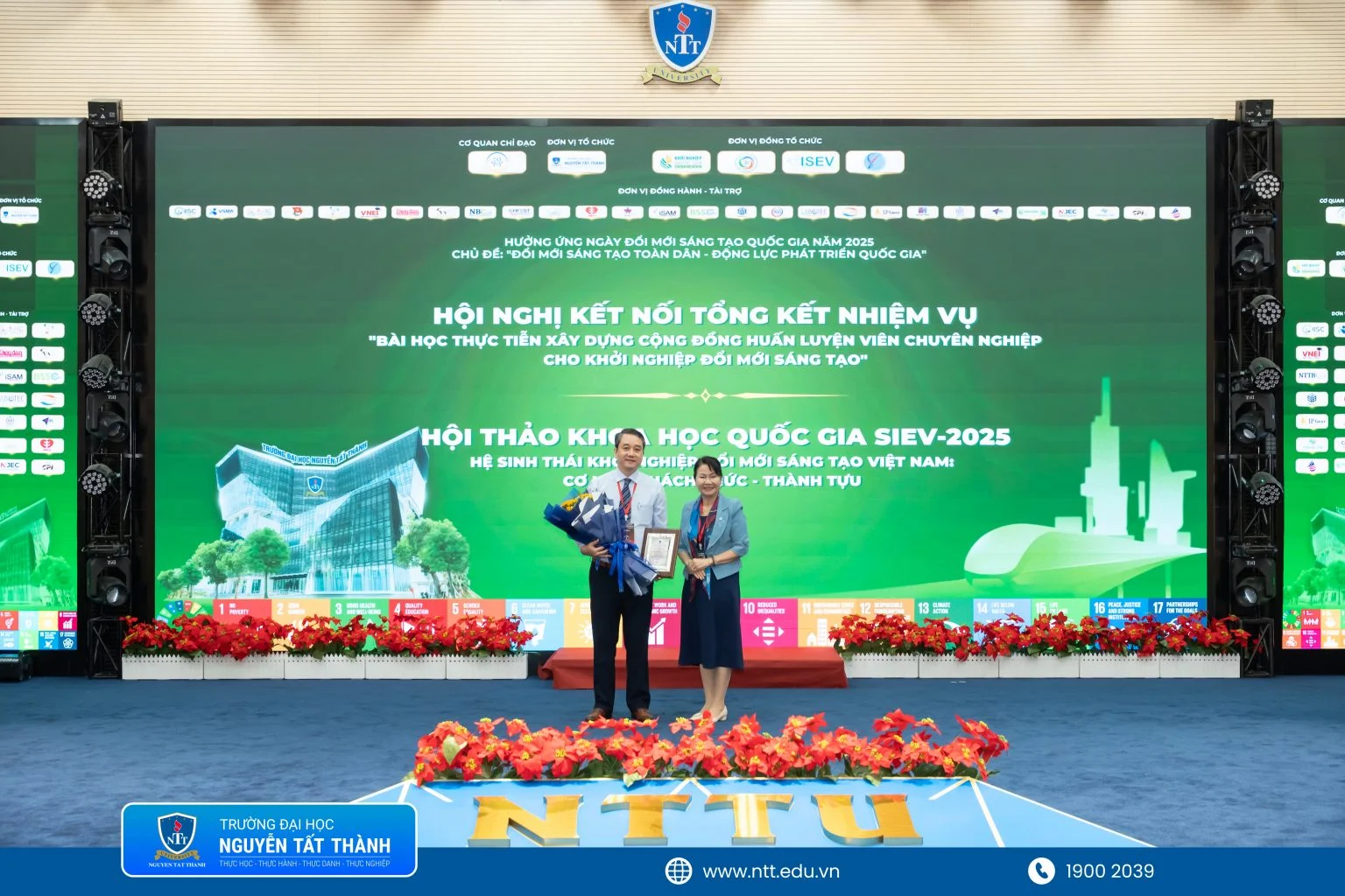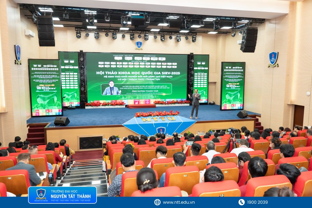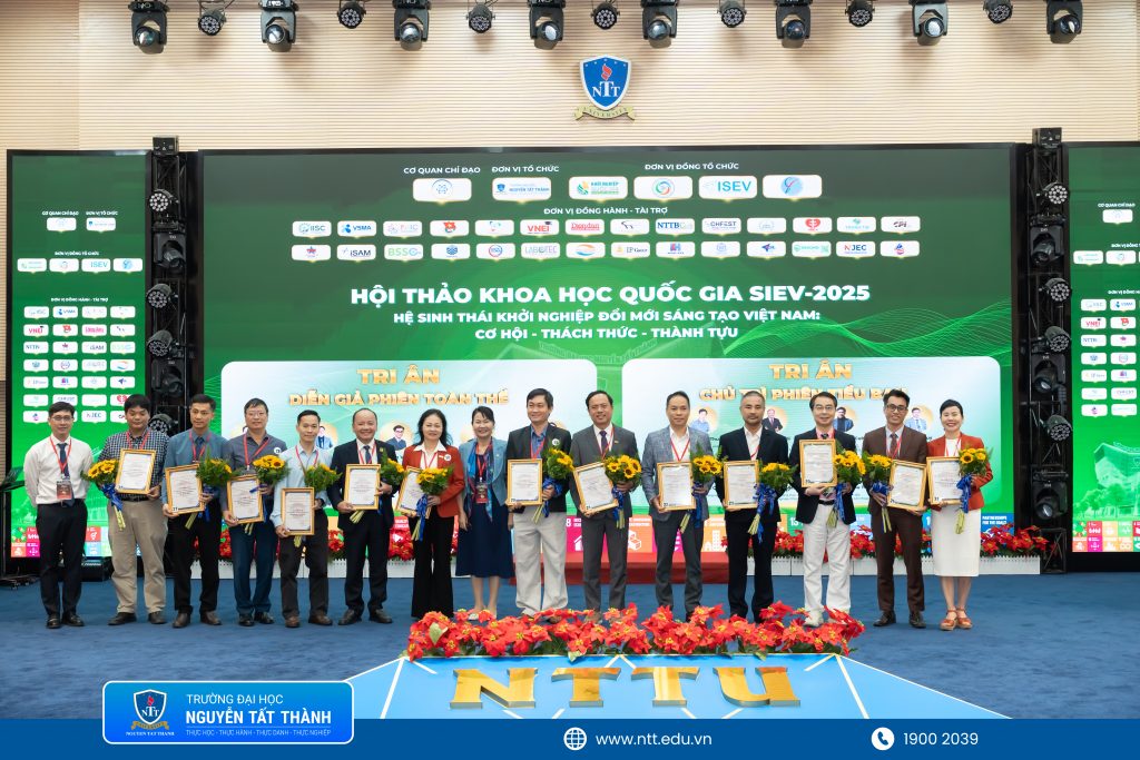 Ngày 27/9/2025, tại Tòa nhà N1 – Trung tâm Phát triển Công nghệ cao, Đoàn Thanh niên – Hội Sinh viên trường phối hợp cùng Nhà trường đã đăng cai tổ chức Hội thảo khoa học quốc gia SIEV-2025 với chủ đề: “Hệ sinh thái khởi nghiệp đổi mới sáng tạo Việt Nam: Cơ hội – Thách thức – Thành tựu”. Chương trình được tổ chức dưới sự chỉ đạo của Cục Khởi nghiệp và Doanh nghiệp công nghệ (NATEC) cùng Quỹ Phát triển Khoa học và Công nghệ Quốc gia (NAFOSTED) thuộc Bộ Khoa học và Công nghệ. Trường Đại học Nguyễn Tất Thành là đơn vị chủ trì, phối hợp cùng Sở Khoa học và Công nghệ TP. HCM, Hội đồng Tư vấn hỗ trợ khởi nghiệp Quốc gia phía Nam, với sự đồng hành của Trung tâm Khởi nghiệp sáng tạo TP. Hồ Chí Minh (SIHUB), Mạng lưới Đổi mới sáng tạo & Khởi nghiệp Đại học và Cao đẳng Việt Nam (VNEI), CLB Doanh nghiệp Trường Đại học Nguyễn Tất Thành
