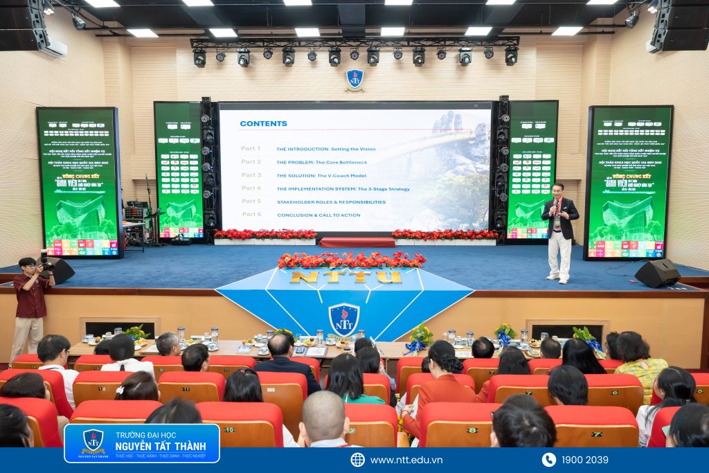 Bắt đầu triển khai từ 5/2025, sau 4 tháng thực hiện nhiệm vụ số 844.NV02.NTTU.02-25 thuộc Đề án Hỗ trợ hệ sinh thái khởi nghiệp đổi mới sáng tạo quốc gia đến năm 2025 của Bộ Khoa học và Công nghệ tại Trường ĐH Nguyễn Tất Thành, nhiệm vụ đã tổ chức thành công một chuỗi 7 hoạt động từ 3 hội nghị kết nối chuyên gia, 3 khóa đào tạo chuyên sâu và thực chiến, đến hội nghị tổng kết, tạo ra một mô hình đào tạo có tính ứng dụng cao. Về mặt định lượng, khóa đào tạo chuyên sâu với 69 người hoàn thành xuất sắc chương trình, đạt tỷ lệ tốt nghiệp ấn tượng là 86.25%, trong số đó có 40 học viên đã được tuyển chọn để tiếp tục tham gia hai khóa đào tạo thực tế và hôm nay sẽ nhận GCN hoàn thành khoá học, chứng tỏ chất lượng và sự cam kết cao của đội ngũ học viên.