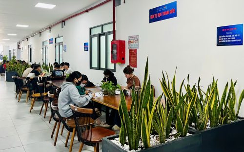 + Trông mới mảng xanh tại Khu tự học thanh niên