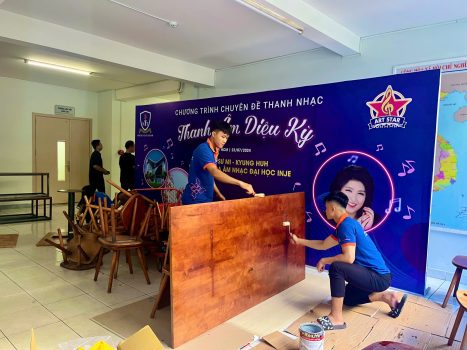 + Sơn sửa hơn 10 bộ bàn ghế để bổ sung vào không gian Khu tự học thanh niên