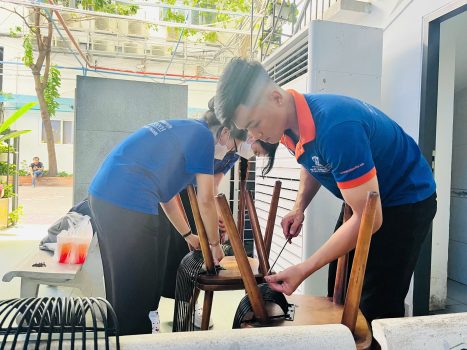 + Sơn sửa hơn 10 bộ bàn ghế để bổ sung vào không gian Khu tự học thanh niên