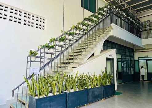 + Cải tạo mảng tường thanh niên với hơn 200 chậu trầu bà cùng dàn tưới tự động;