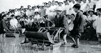 Đầu năm 1946, có cuộc họp cán bộ từ trung ương đến các địa phương, Bác đến thăm và nói chuyện. Khi giải thích mối quan hệ giữa chính sách của chính phủ với nhân dân thông qua đội ngũ cán bộ địa phương, Bác dùng một tấm bìa hình tam giác cân. Bác quay đáy tam giác lên trên, hướng đỉnh xuống phía dưới và nói: “Nhưng những chủ trương đó qua nhiều cấp, nhiều cán bộ yếu kém đến khi xuống đến dân thì bé lại chỉ còn chường này”.