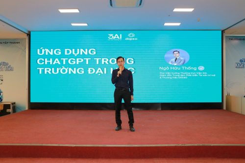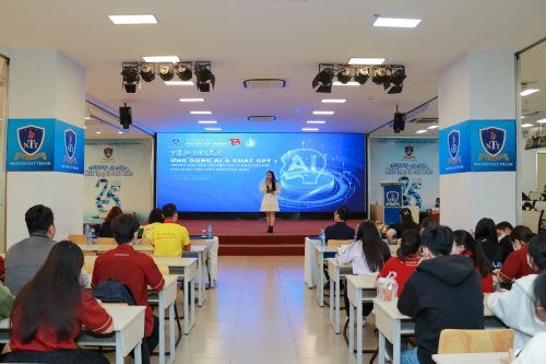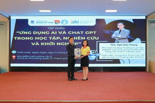 Sáng ngày 12/01/2024 tại Hội trường lầu 9 – Cơ sở An Phú Đông, Quận 12 trường ĐH Nguyễn Tất Thành đã diễn ra buổi tập huấn Ứng dụng AI và Chat GPT trong học tập, nghiên cứu và khởi nghiệp với gần 600 sinh viên tham dự cùng với Báo cáo viên là ThS. Ngô Hữu Thống – Phó Viện trưởng Viện Nghiên cứu Ứng dụng và Đổi mới Sáng tạo Doanh nghiệp (3AI), Giám đốc Trung tâm Phát triển Tài sản trí tuệ và Thương hiệu DIGISO.