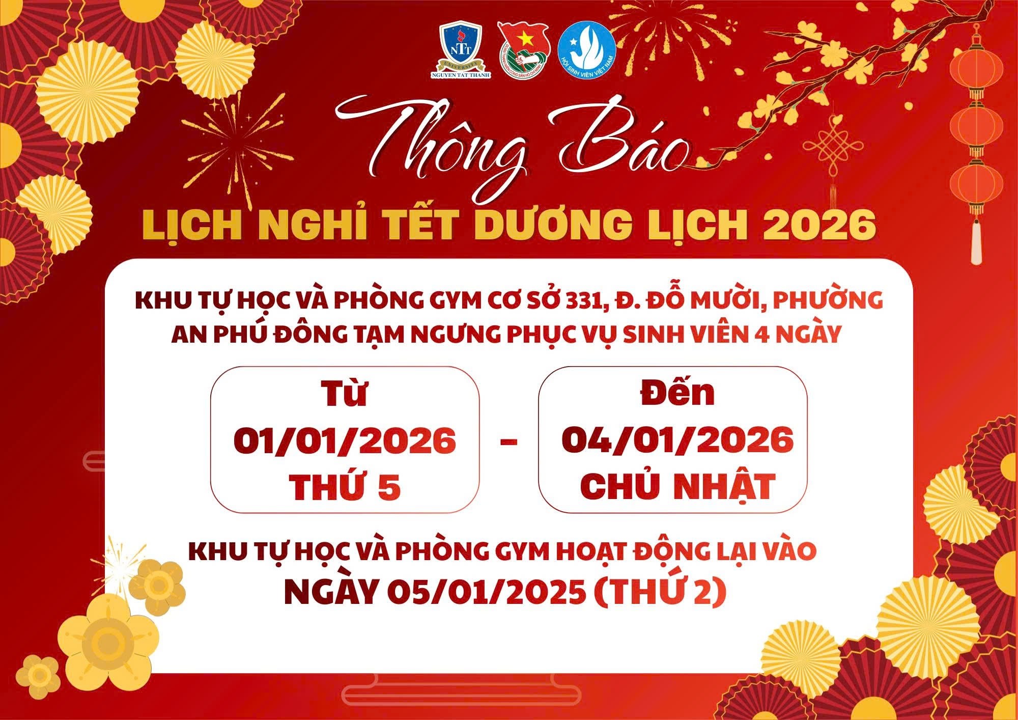 Từ 01/01/2026 (Thứ Năm) đến hết 04/01/2026 (Chủ nhật)