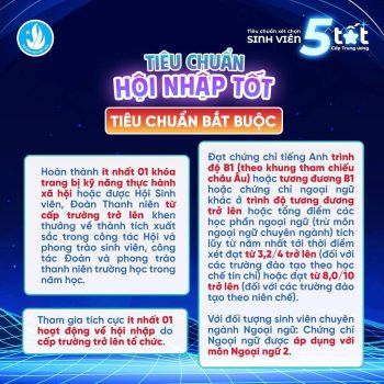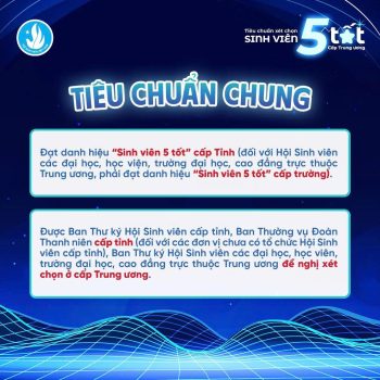 Trung ương Hội Sinh viên Việt Nam giới thiệu Infographic tiêu chuẩn xét chọn danh hiệu “Sinh viên 5 Tốt” cấp Trung ương, giúp các bạn sinh viên tiếp cận phong trào một cách trực quan, gần gũi và đầy màu sắc.