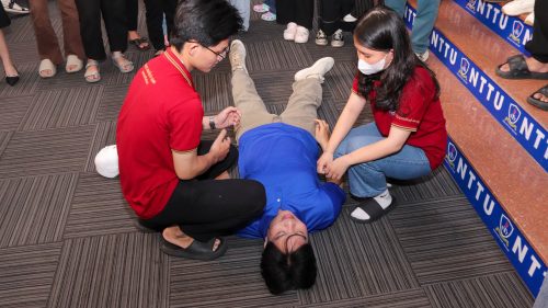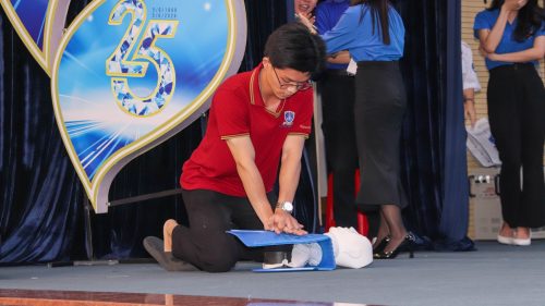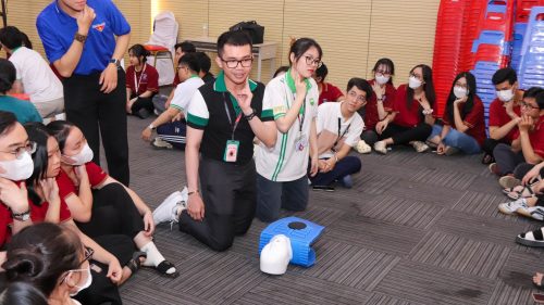 Sau phần tập huấn lý thuyết, các bạn sinh viên chúng ta được chia thành 4 nhóm để thực hành sơ cấp cứu trên mô hình thực hành ép tim, thổi ngạt. Kết thúc phần tập huấn thực hành là phần thi ép tim và thổi ngạt trên mô hình. Các bạn đã xuất sắc thể hiện kĩ năng mà mình đã được tập huấn trong suốt chương trình.