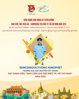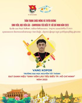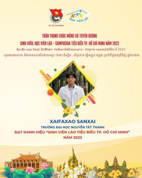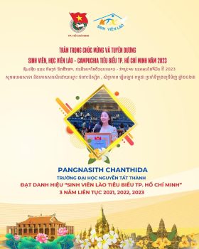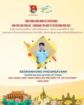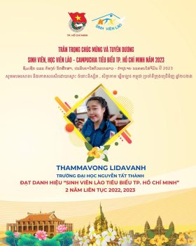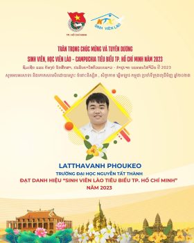 Chương trình tuyên dương “Sinh viên, học viên Lào và Campuchia tiêu biểu TP. Hồ Chí Minh” năm 2023 sẽ được tổ chức vào lúc 09g00 ngày 03/12/2023 (Chủ nhật) tại Hội trường A.801, trường Đại học Nguyễn Tất Thành (Số 300A, Nguyễn Tất Thành, Phường 13, Quận 4, TP. Hồ Chí Minh)